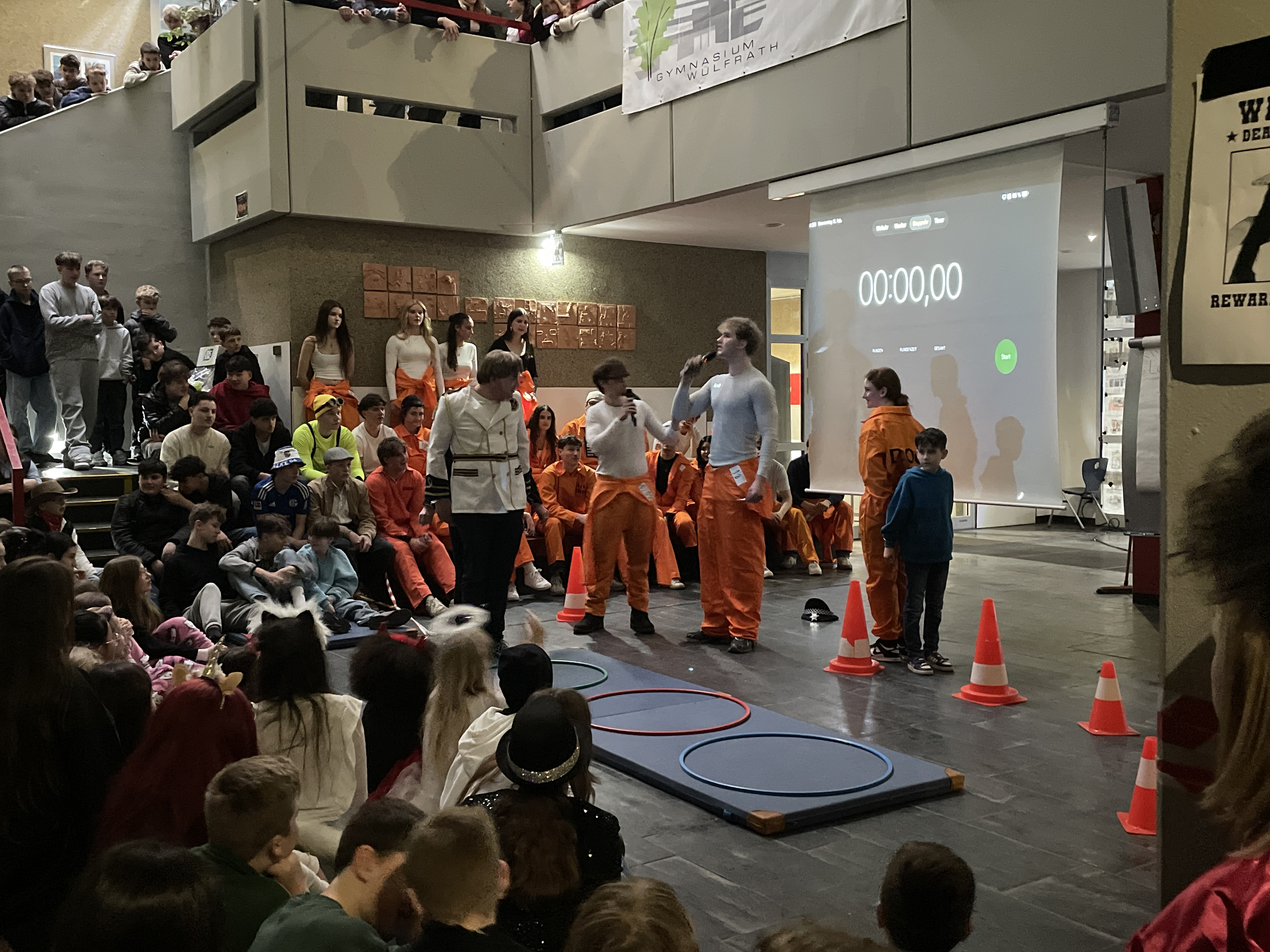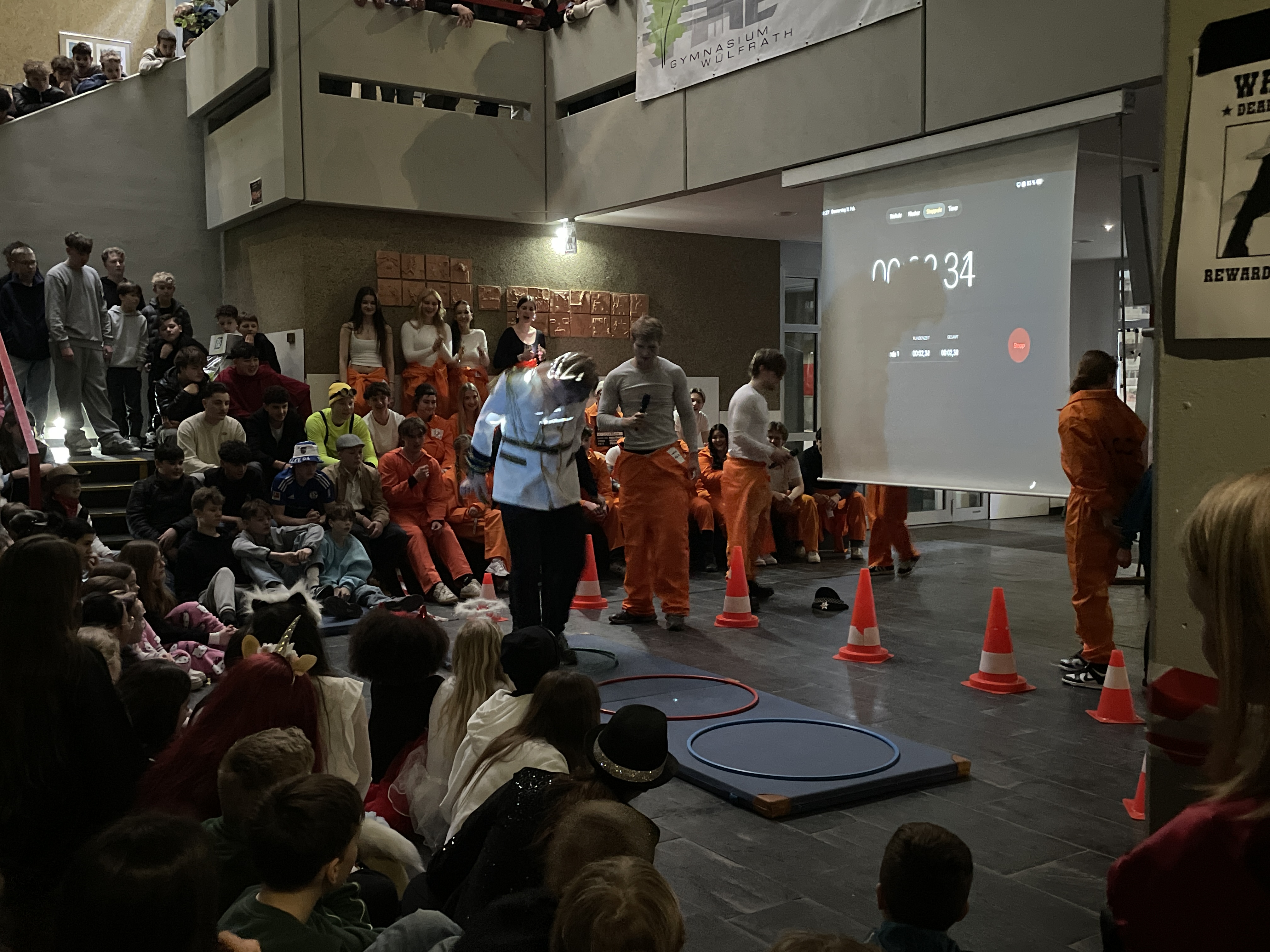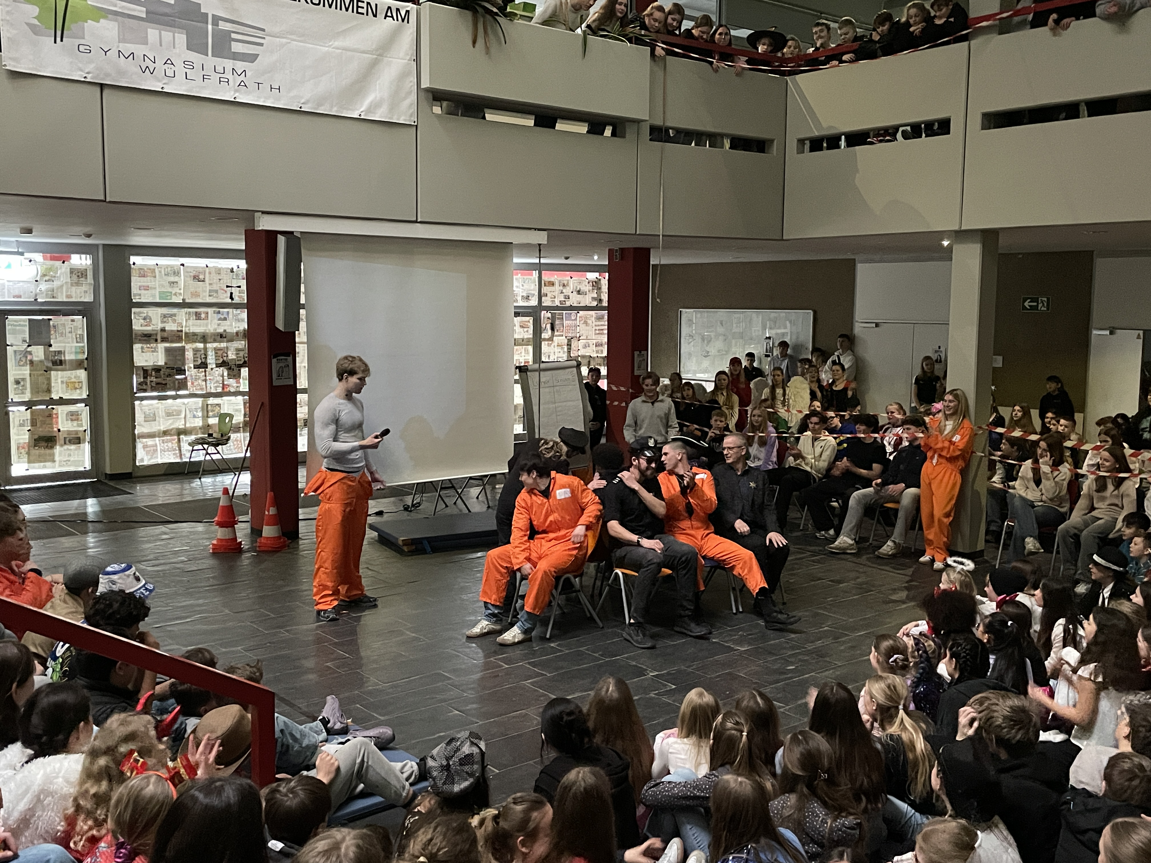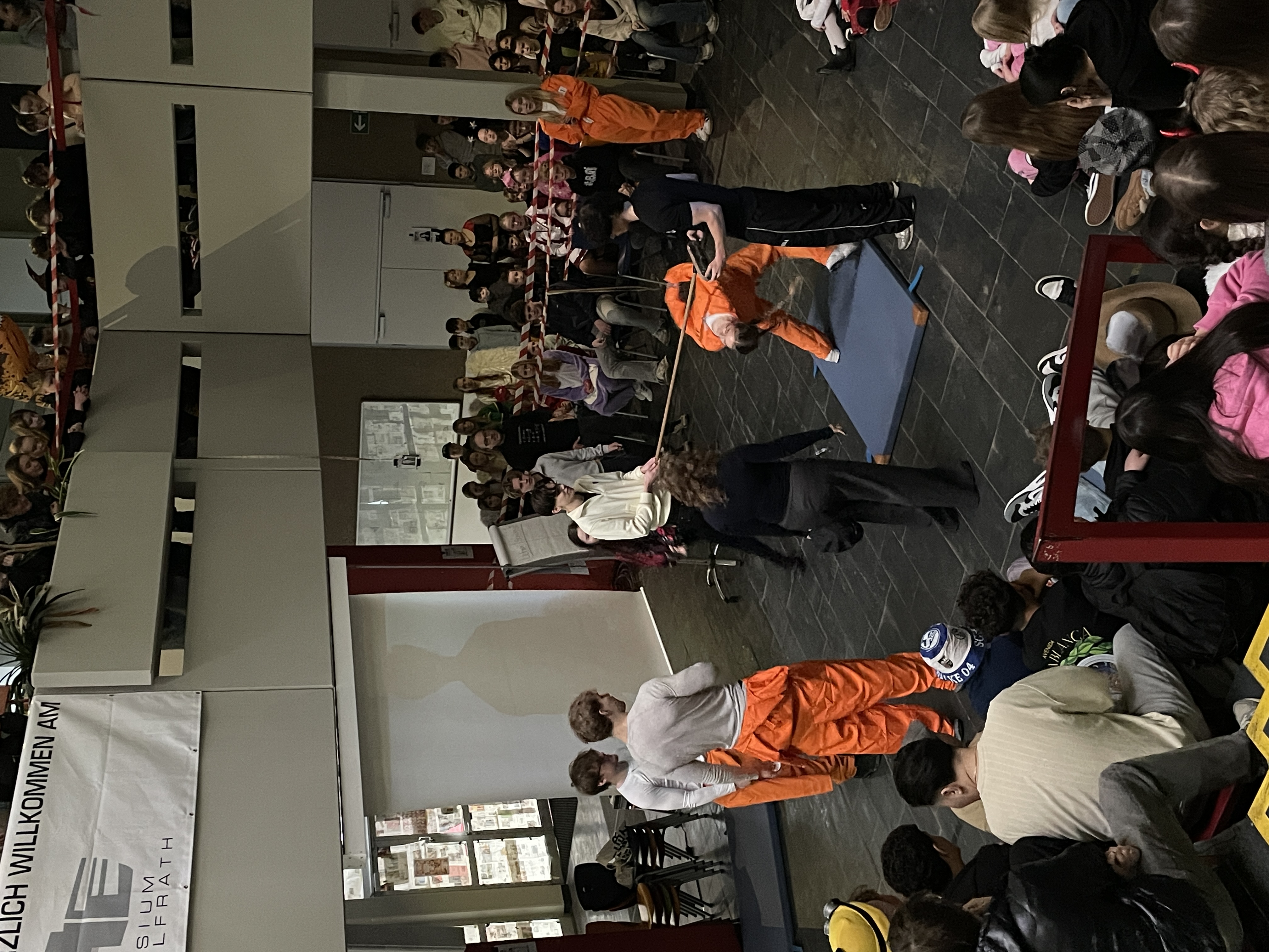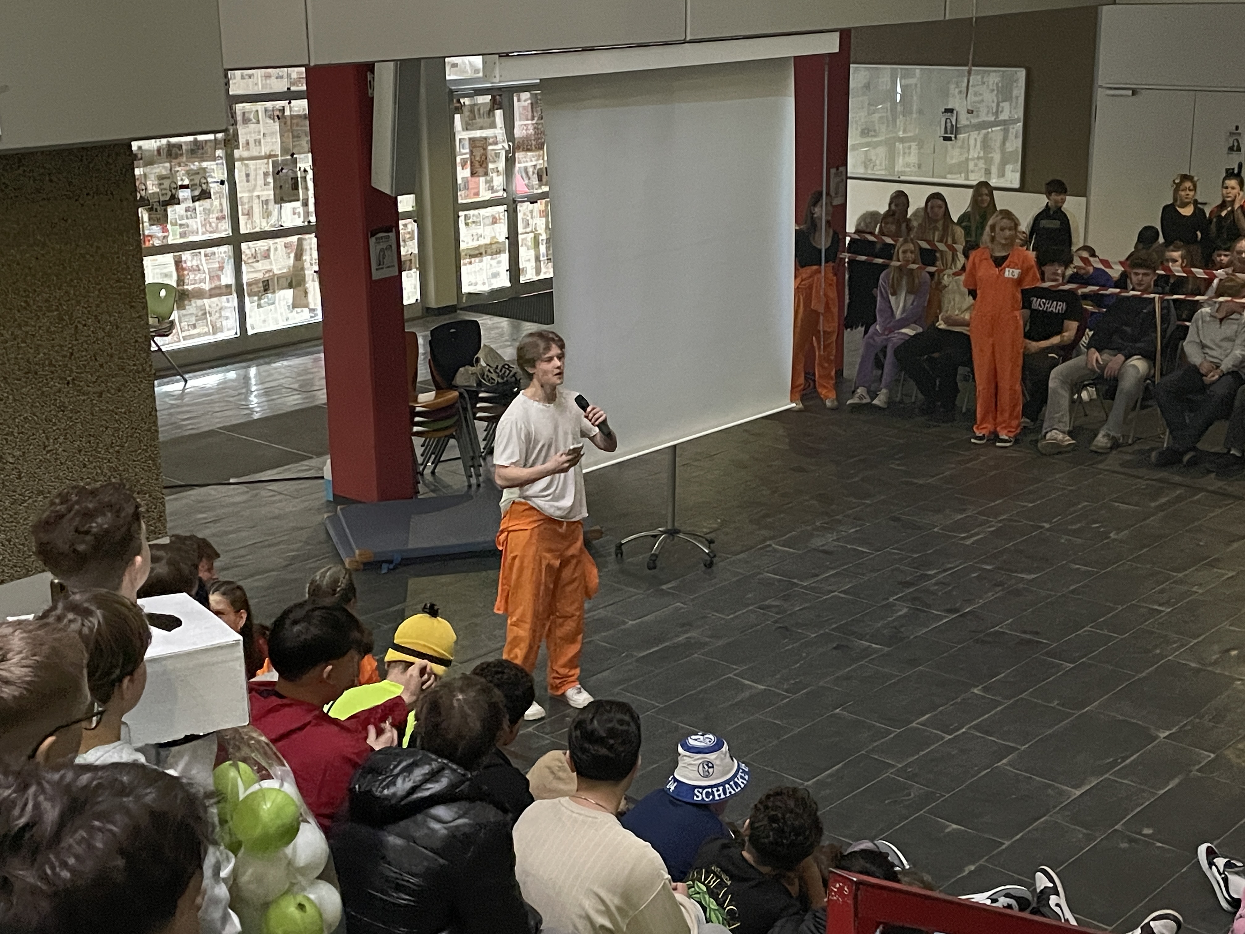 Organisiert wurde das närrische Spektakel von der Q1. Mit viel Engagement, Organisationstalent und einem guten Gespür für Unterhaltung stellten die Schüler:innen ein abwechslungsreiches Programm auf die Beine. Das Ergebnis: eine rundum gelungene Feier! Mit sichtbarer Freude und spürbarer Energie führten die beiden Moderatoren durch das Programm. Schlagfertig und humorvoll sorgten sie dafür, dass die Stimmung von der ersten Minute an auf Betriebstemperatur war.