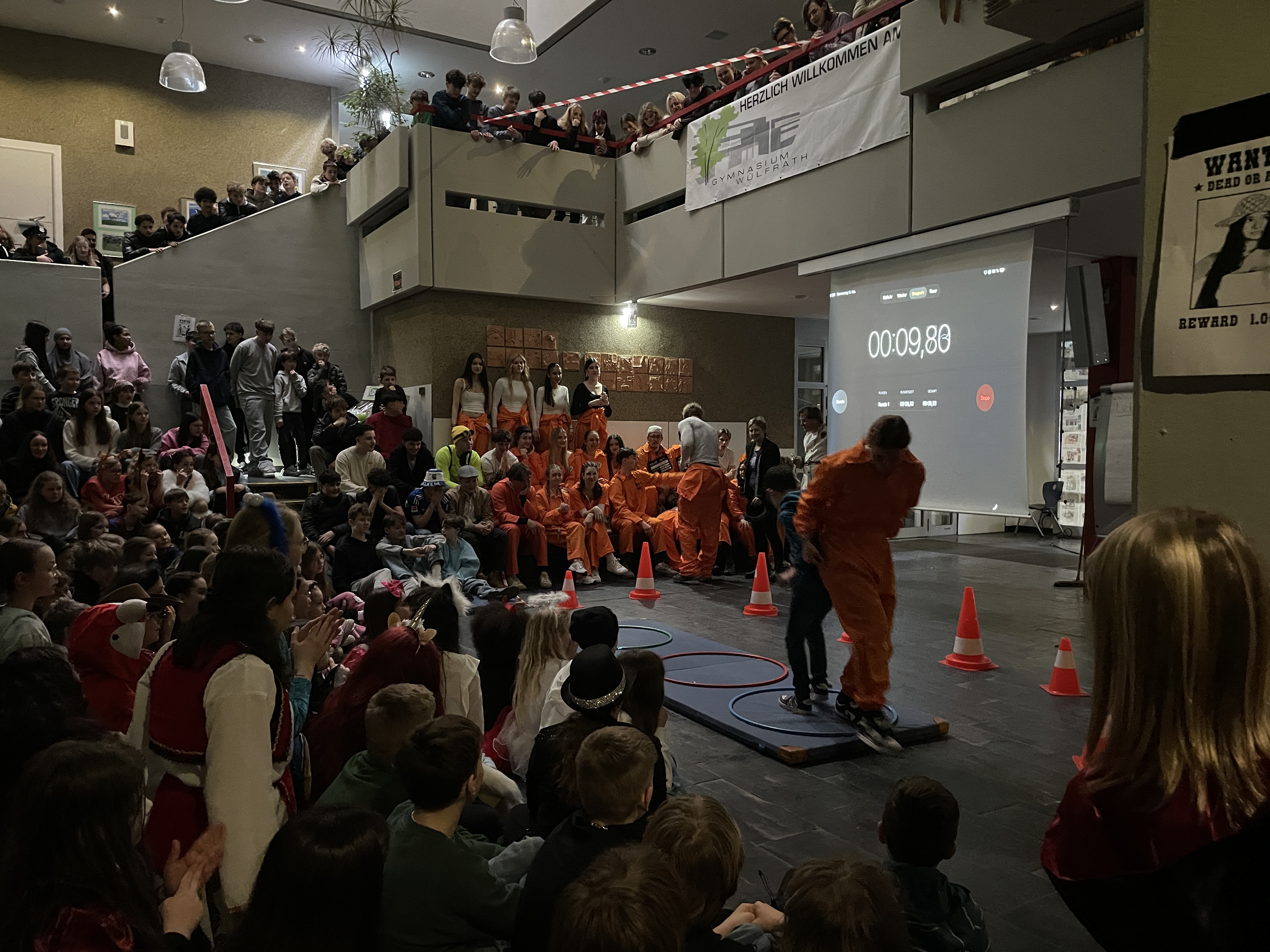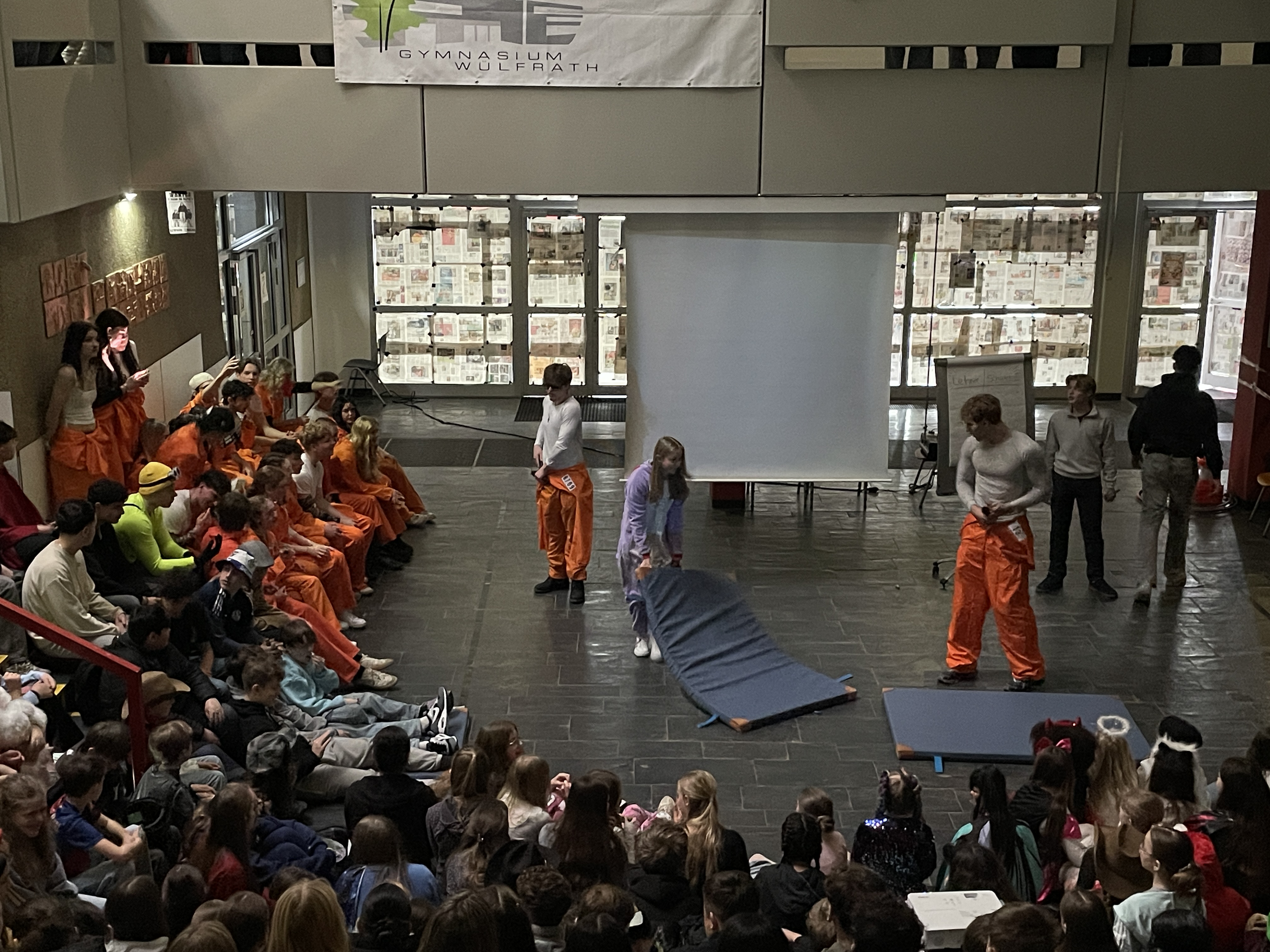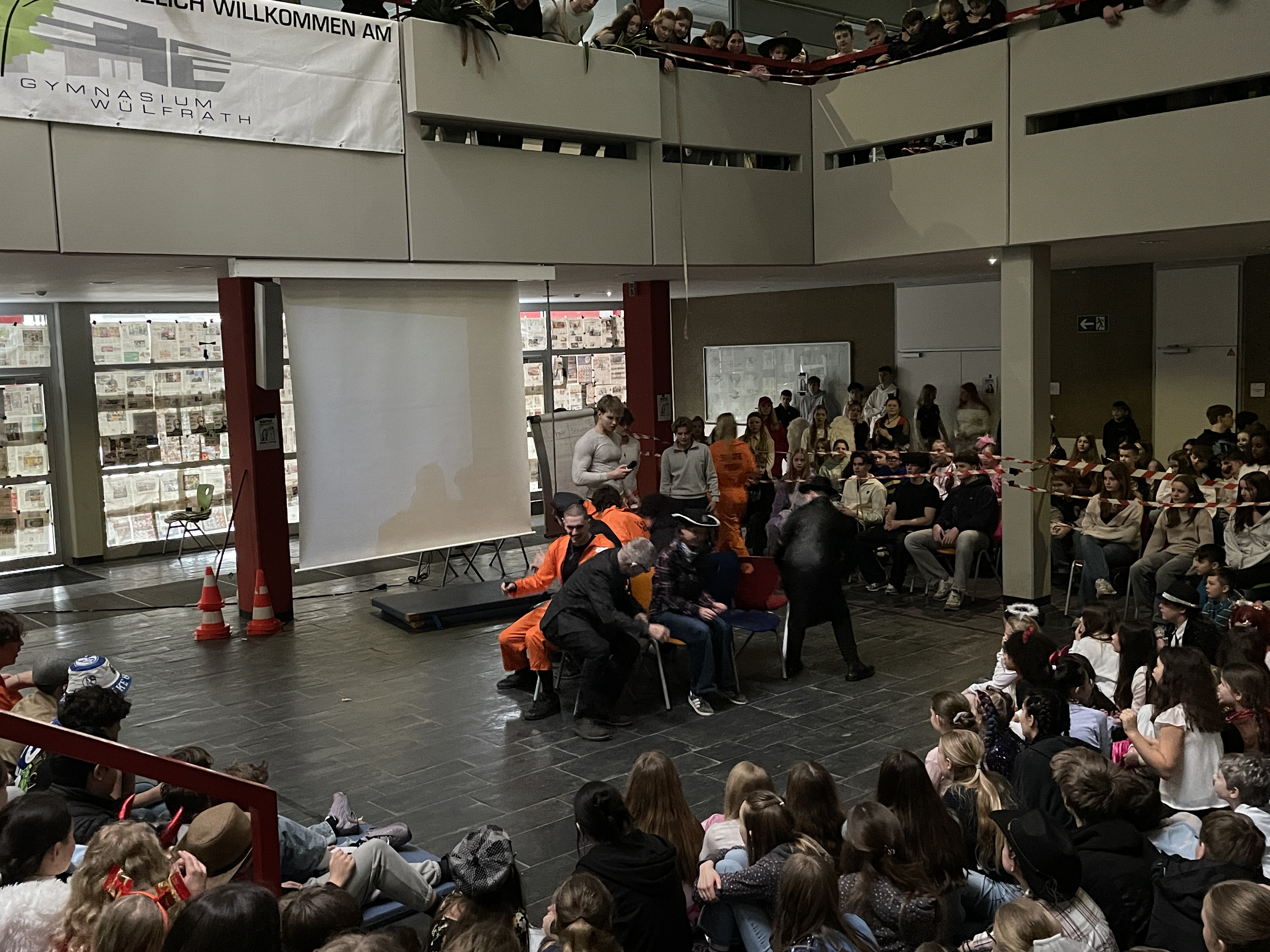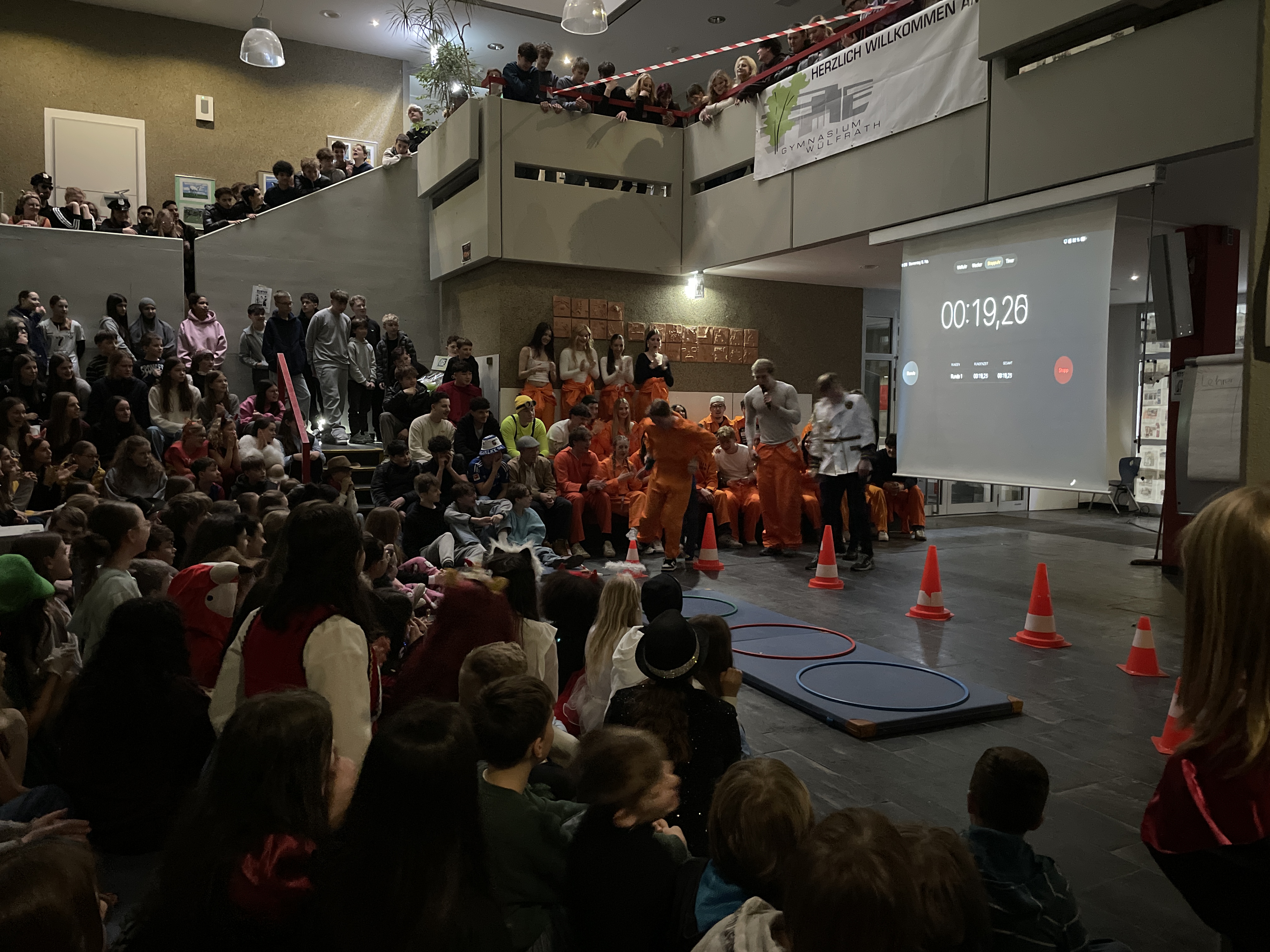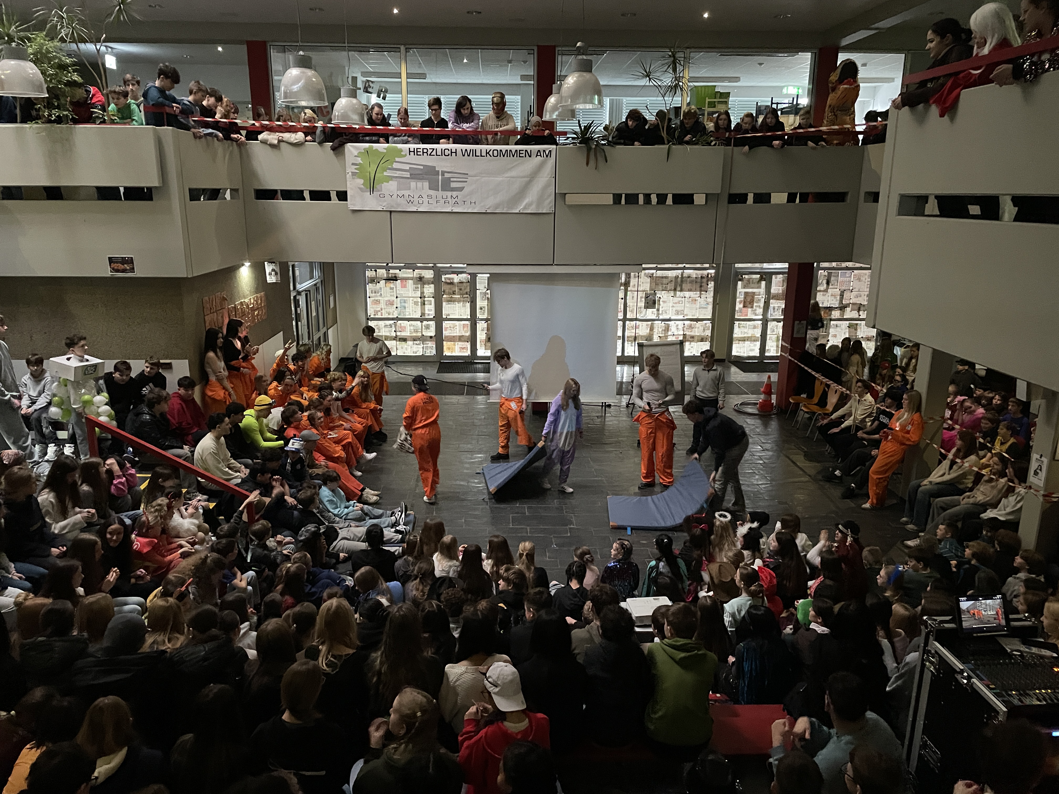 Organisiert wurde das närrische Spektakel von der Q1. Mit viel Engagement, Organisationstalent und einem guten Gespür für Unterhaltung stellten die Schüler:innen ein abwechslungsreiches Programm auf die Beine. Das Ergebnis: eine rundum gelungene Feier! Mit sichtbarer Freude und spürbarer Energie führten die beiden Moderatoren durch das Programm. Schlagfertig und humorvoll sorgten sie dafür, dass die Stimmung von der ersten Minute an auf Betriebstemperatur war.