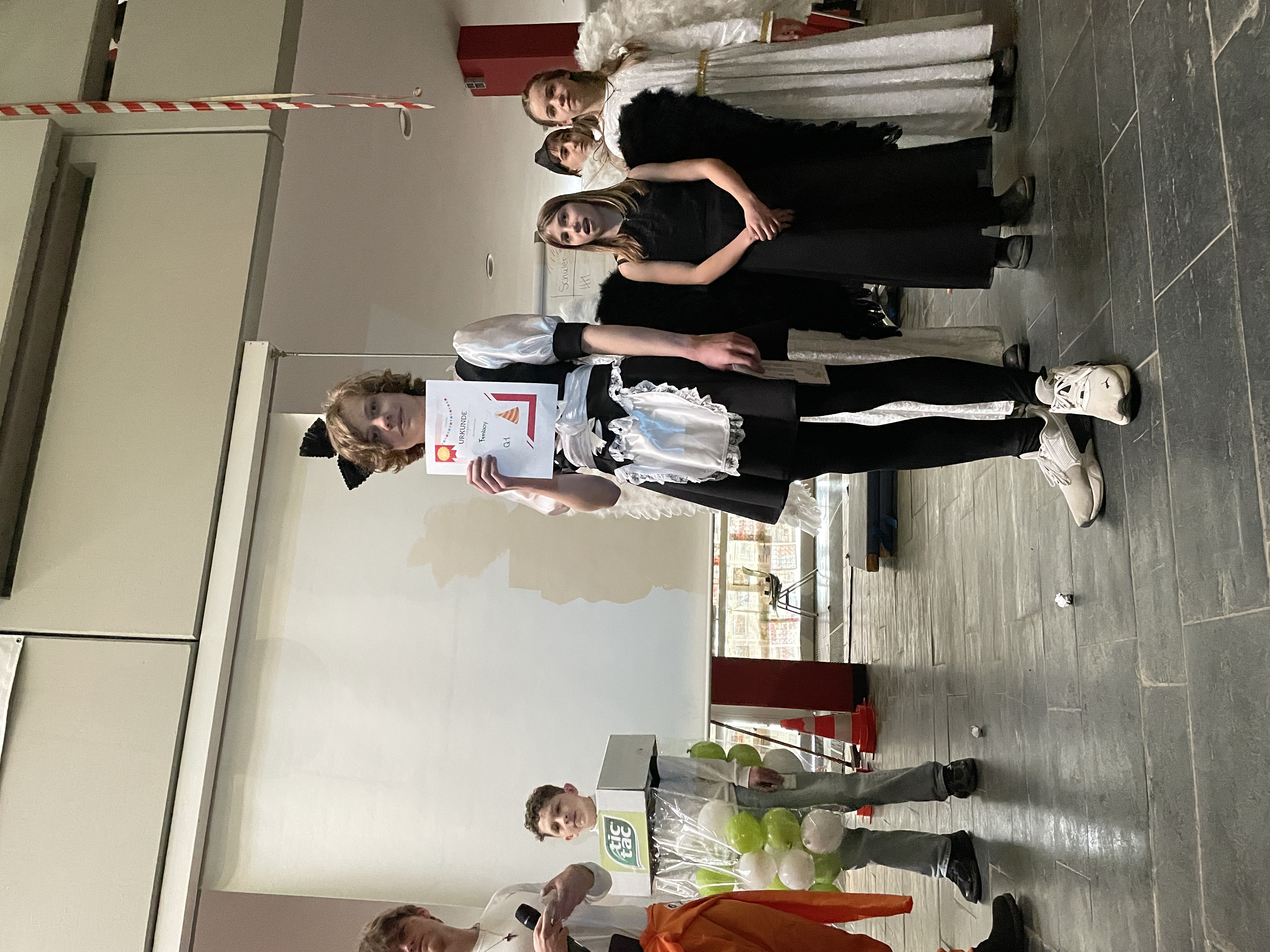Auch die Kostüme konnten sich sehen lassen. Von aufwendig bis originell war alles vertreten. Das Publikum war vor allem von Logan aus der 9a überzeugt, der als weibliche Haushaltshilfe auftrat und die Jury begeisterte.