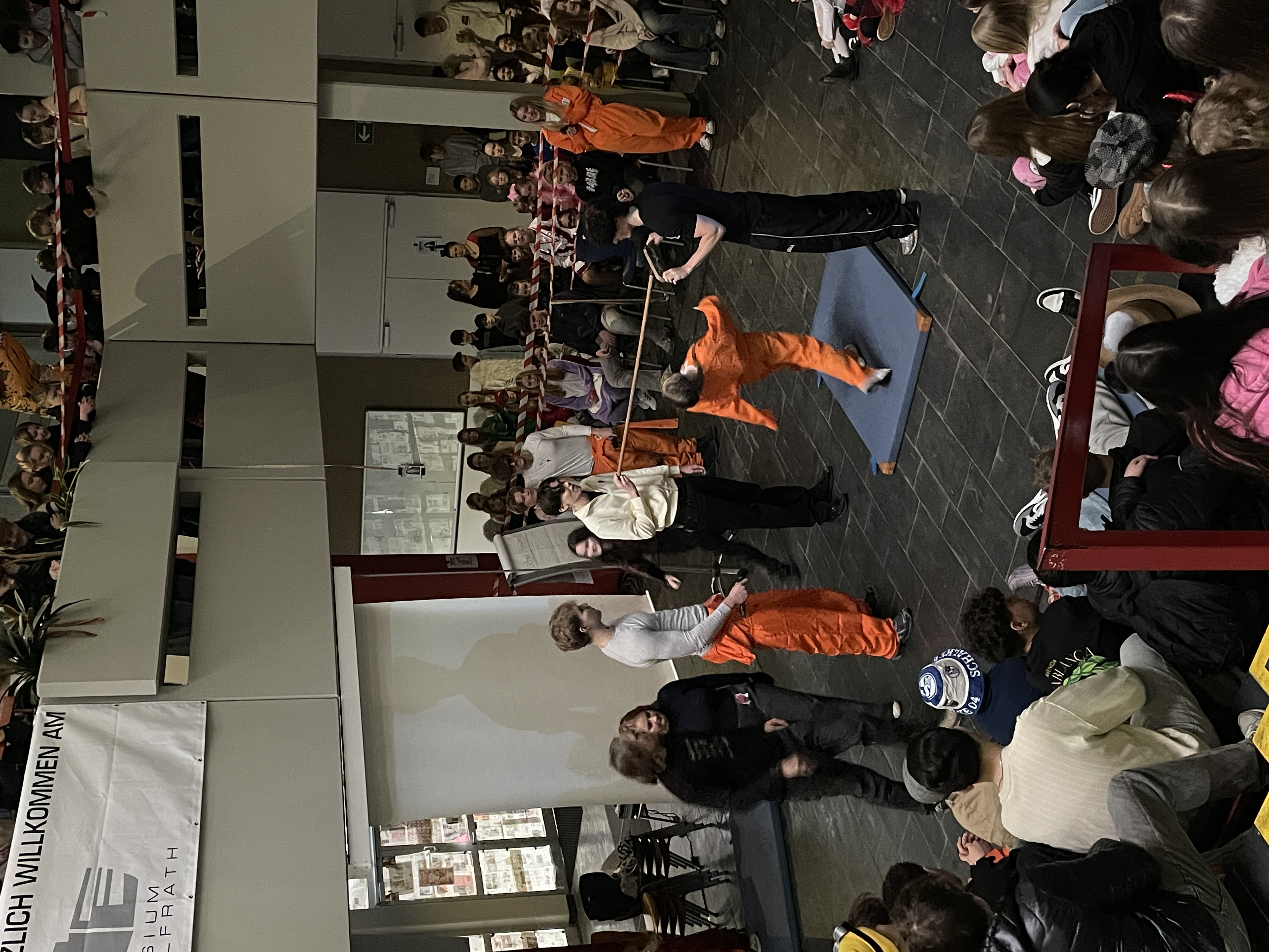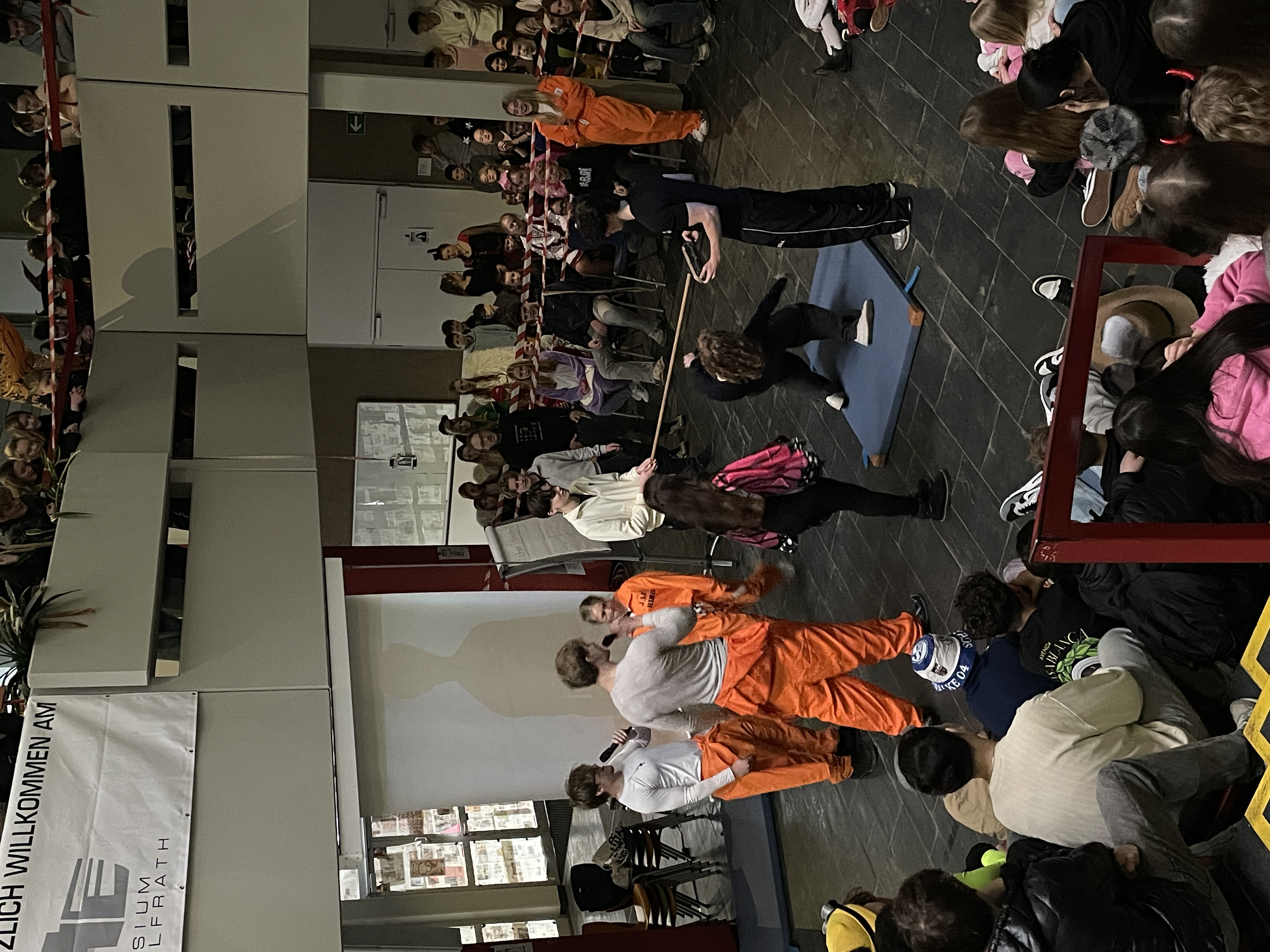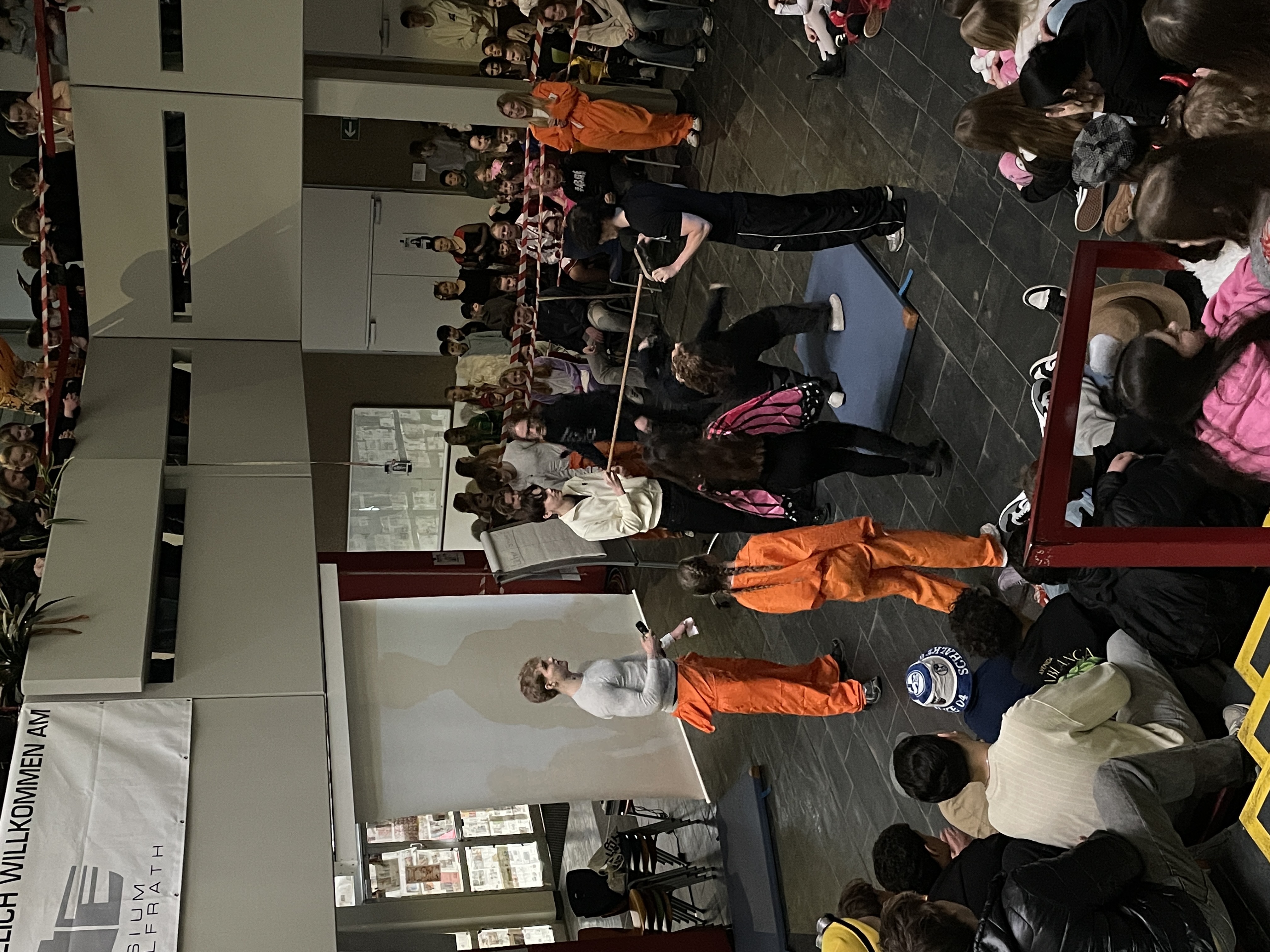 Organisiert wurde das närrische Spektakel von der Q1. Mit viel Engagement, Organisationstalent und einem guten Gespür für Unterhaltung stellten die Schüler:innen ein abwechslungsreiches Programm auf die Beine. Das Ergebnis: eine rundum gelungene Feier! Mit sichtbarer Freude und spürbarer Energie führten die beiden Moderatoren durch das Programm. Schlagfertig und humorvoll sorgten sie dafür, dass die Stimmung von der ersten Minute an auf Betriebstemperatur war.