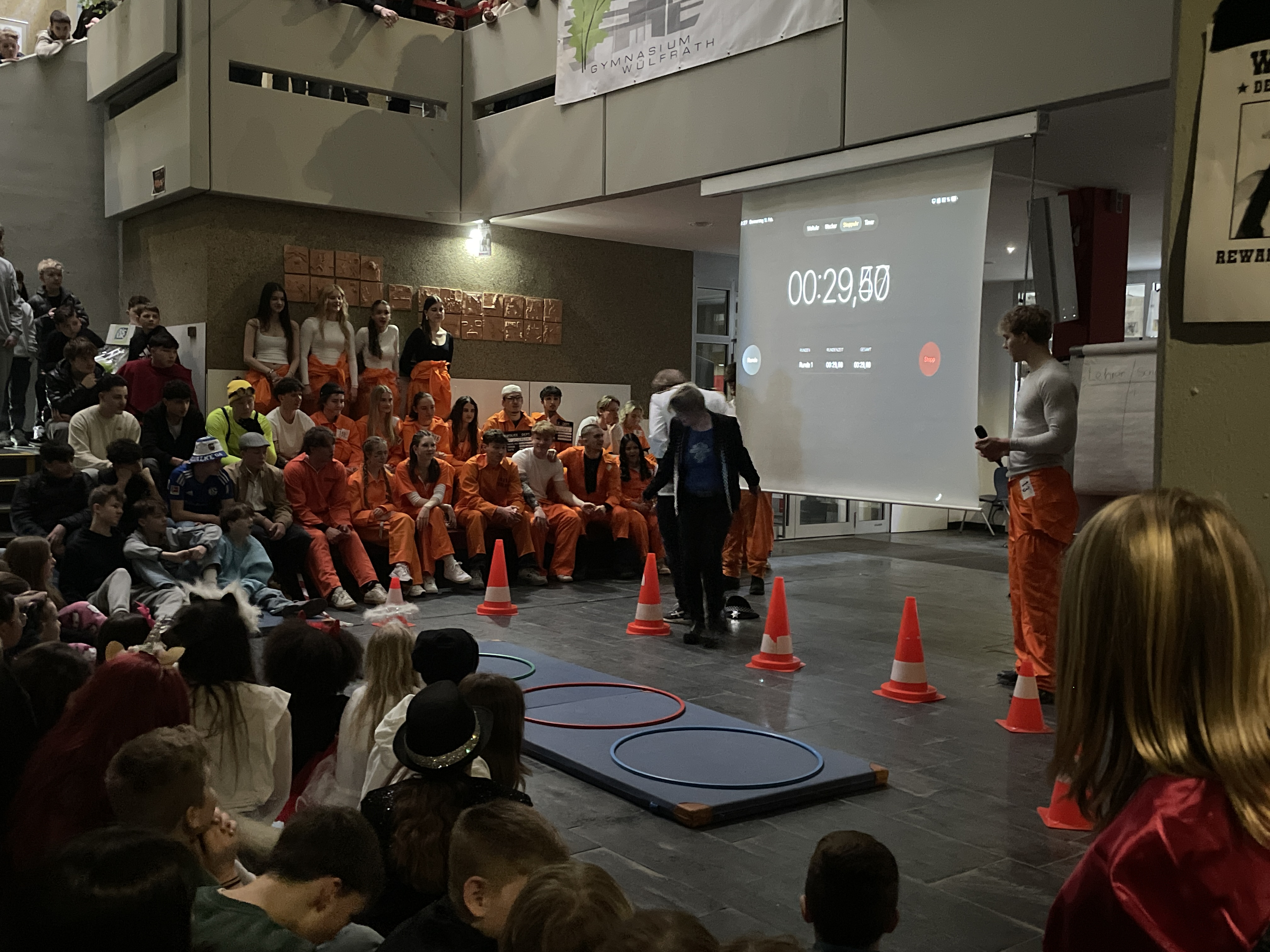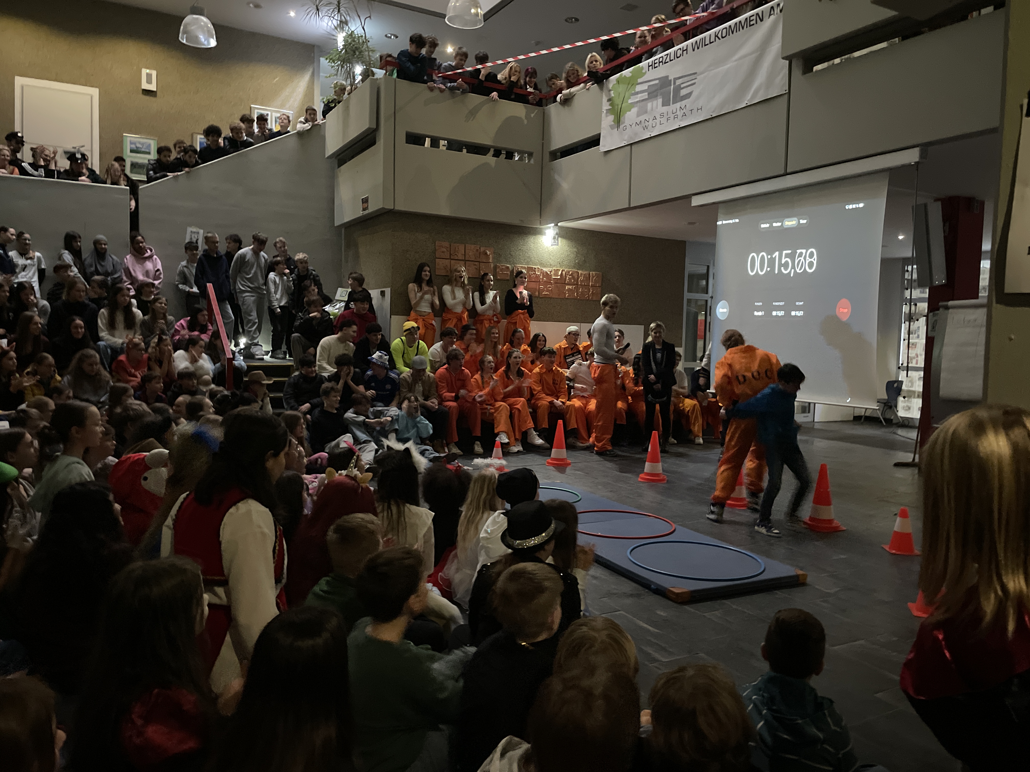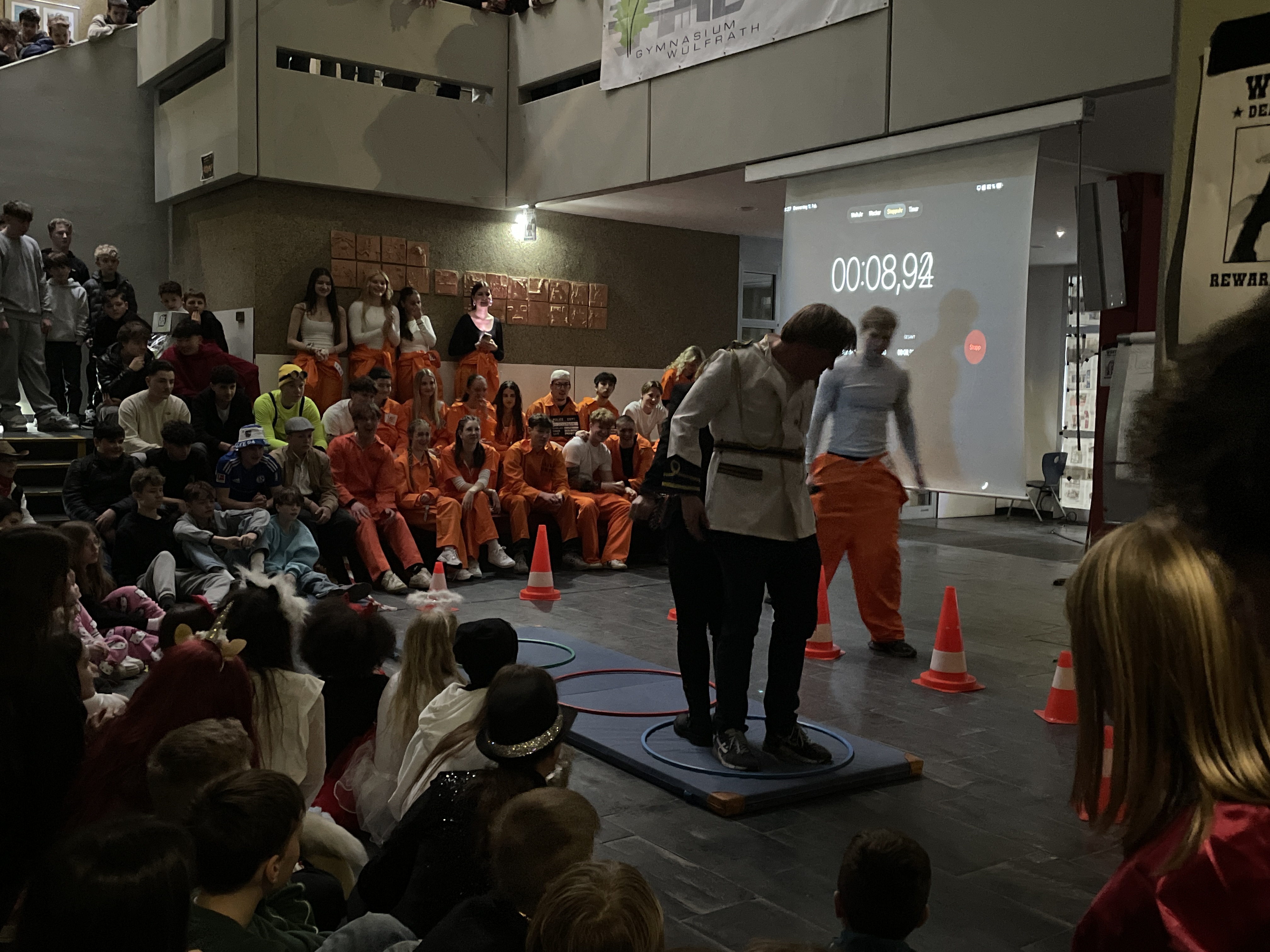 Organisiert wurde das närrische Spektakel von der Q1. Mit viel Engagement, Organisationstalent und einem guten Gespür für Unterhaltung stellten die Schüler:innen ein abwechslungsreiches Programm auf die Beine. Das Ergebnis: eine rundum gelungene Feier! Mit sichtbarer Freude und spürbarer Energie führten die beiden Moderatoren durch das Programm. Schlagfertig und humorvoll sorgten sie dafür, dass die Stimmung von der ersten Minute an auf Betriebstemperatur war.