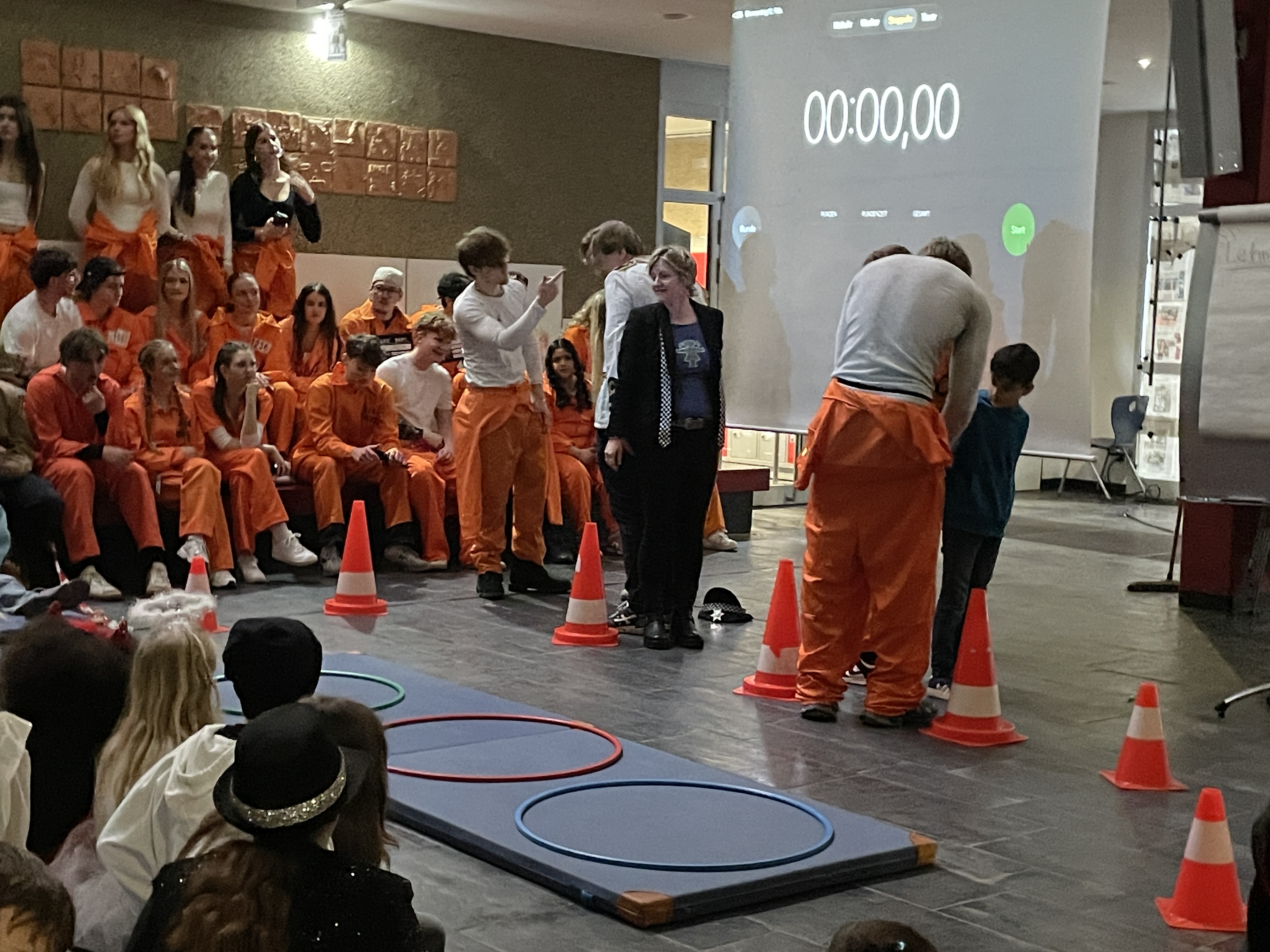 Ein besonderes Highlight waren wie jedes Jahr die Spiele, in denen Lehrer:innen gegen Schüler:innen antreten mussten – sehr zur Freude des Publikums, das begeistert mitfieberte. Ob beim Stopptanz, bei der Reise nach Jerusalem, beim Erklären aktueller Jugendwörter oder beim Limbo: Der Ehrgeiz war auf beiden Seiten groß. Doch am Ende zeigte sich eindeutig, wer in Sachen Beweglichkeit und Schnelligkeit die Nase vorn hatte. Die Schüler:innen siegten verdient haushoch!