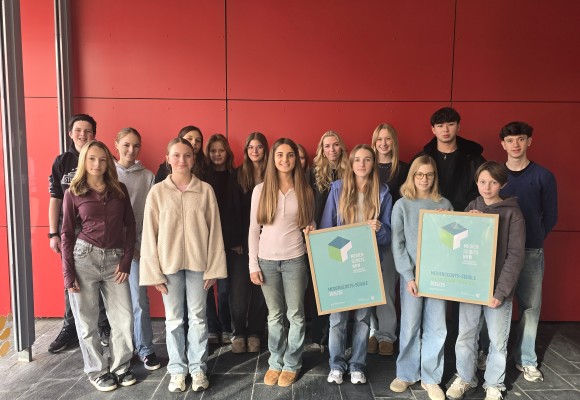 "Das Städt. Gymnasium Wülfrath hat vom Ministerium für Schule und Bildung des Landes Nordrhein-Westfalen und der Landesanstalt für Medien NRW als eine von 152 Schulen die Auszeichnung „Medienscouts-Schule 2025“ erneut erhalten. Dieses Abzeichen erhalten Schulen, die sich in besonderem Maße für das Angebot Medienscouts NRW engagieren. Zusätzlich wurde die Schule mit einem Zusatzabzeichen für ihren besonderen Einsatz gegen Desinformation ausgezeichnet. Dieses Sonderabzeichen mit dem Namen „Medienscouts-Schule gegen Desinformation“ wurde in diesem Jahr an 54 Schulen in NRW vergeben.